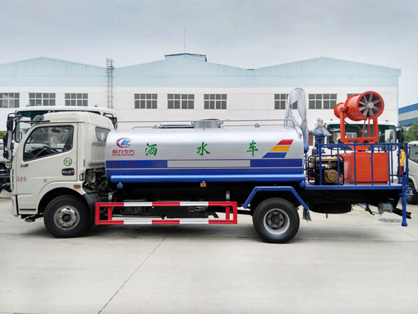 ★功能配置:帶前部沖洗路面噴灑裝置、后部扇形降塵噴灑裝置,兩側(cè)面噴灑裝置,帶后部工作平臺(tái)、平臺(tái)上安裝綠化灑水炮(炮噴射形狀可調(diào)),可調(diào)直沖狀、大雨、中雨、毛毛雨,可連續(xù)調(diào)節(jié),最大射程可達(dá)28米,垂直吸程6.5米,揚(yáng)程14米,另加裝高效率車載式風(fēng)送噴霧機(jī),噴藥炮霧化效果好,可遠(yuǎn)程噴霧,水平射程達(dá)25米。帶消防接口、自流閥,可自吸自排。