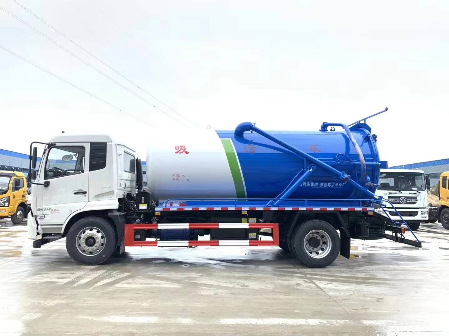 其它 | 1,該車裝有真空泵,用于吸污作業;2,罐體有效容積:11.1立方米, 罐體外形尺寸(直線段長×直徑)(mm):4700×1850;3,整車長/軸距/前懸/軸距/后懸對應關系為(mm):7150/1400/3800/1950,7300/1400/3950/1950,7550/1400/4200/1950,7850/1400/4500/1950,8050/1400/4700/1950,7880/1430/4500/1950;4,左右防護材料:Q235,連接方式:左右側面及后下部防護均采用焊接連接,后部防護材料為:Q235A,斷面尺寸(mm):120×50,后部防護離地高度(mm):450;5,隨底盤選裝駕駛室;6, ABS型號/生產廠家:3631010-C2000/東科克諾爾商用車制動系統(十堰)有限公司,ABS 8/東科克諾爾商用車制動系統(十堰)有限公司, 4460046450/威伯科汽車控制系統(中國)有限公司;7.選裝水箱和吸污泵用于吸污作業. |