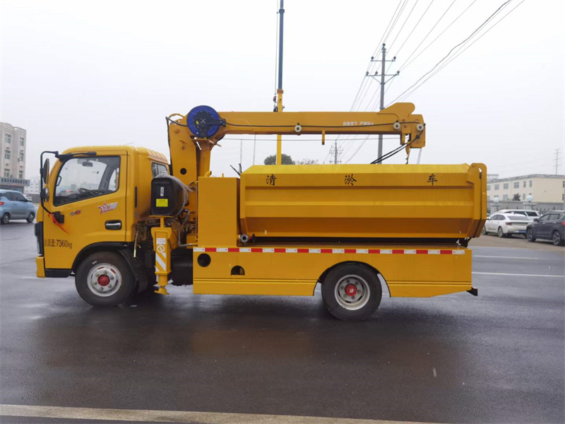 東風(fēng)3308軸距清淤車,容積4.5立方,2.5噸2節(jié)臂吊機(jī),主要抓取市政管井的污物,減少人工安全事故.