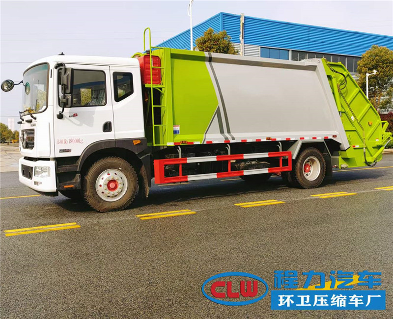 ?風(fēng)東?D9單橋18方壓縮垃圾車(chē)配置:康明斯230馬力發(fā)動(dòng)機(jī),法士特?檔八?變速箱,10噸級(jí)后橋,10.00的鋼絲胎。東風(fēng)18方壓縮垃圾車(chē)箱?容體?積18立方,垃圾車(chē)鋼板邊5底5?板錳?制作,機(jī)?人器?自動(dòng)化焊接工藝,中梅?路多?閥,長(zhǎng)源雙聯(lián)泵,背壓閥,西門(mén)子PLC電控系統(tǒng)?遙帶?控裝置,壓縮垃圾車(chē)尾部常規(guī)翻轉(zhuǎn)機(jī)構(gòu)。