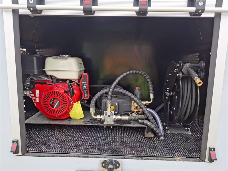 上裝配置:1.5方電泳水箱,本田/百力通副發可選,GTM/德國品孚高壓水泵可選,前置寬噴水架,定點清洗,手扶掃盤,手持清洗車,手持清洗噴槍,電控開關可控制清洗劑架上下升降、左右擺動,20米高壓卷盤,多方位清洗墻面、電線桿上的小廣告;人行道、路沿石清潔。